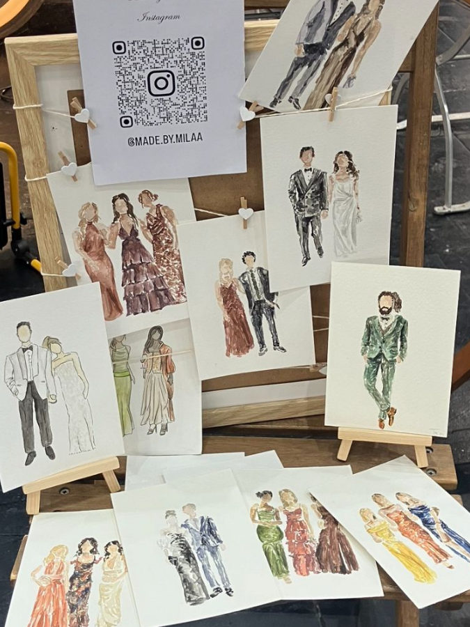 Ich male vor Ort kleine, farbenfrohe Aquarellbilder (max. DIN A5) als persönliche Erinnerung an Euren großen Tag. Ob Brautpaar oder Gäste, jedes Bild ist ein liebevolles Einzelstück, das viel Freude schenkt.